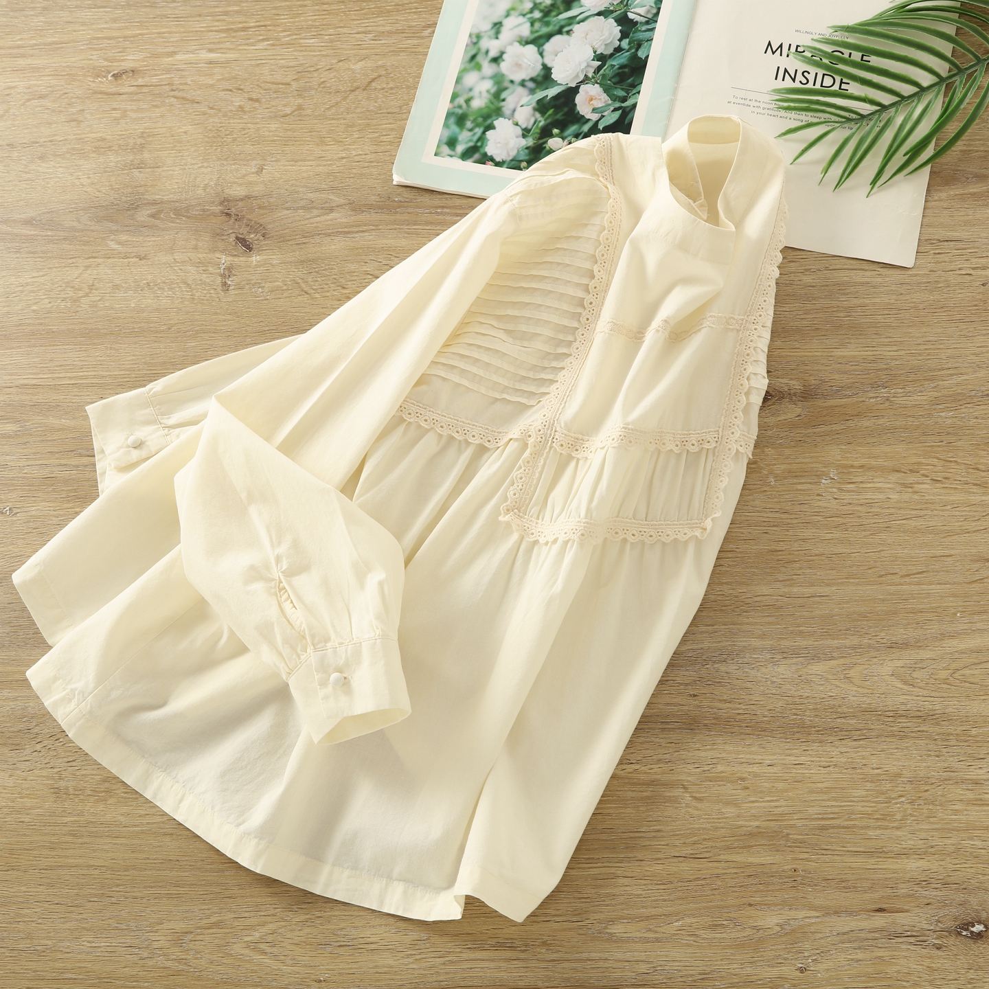 韩版翻领灯笼袖娃娃衫上衣2025春装宽松微透长袖衬衣女+吊带背心