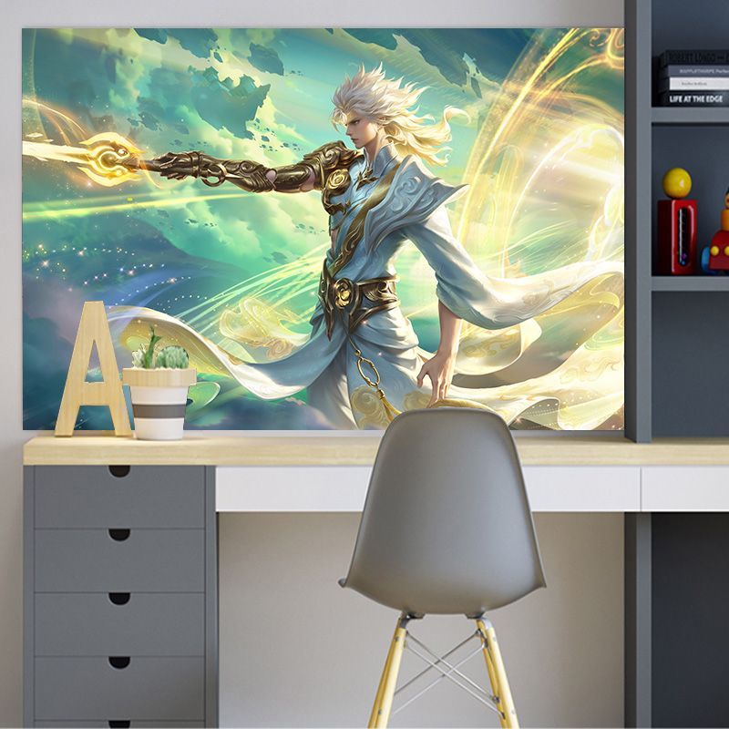 王者荣耀海报宿舍墙贴寝室壁纸瑶镜李白赵云墙纸贴画自粘超大定制