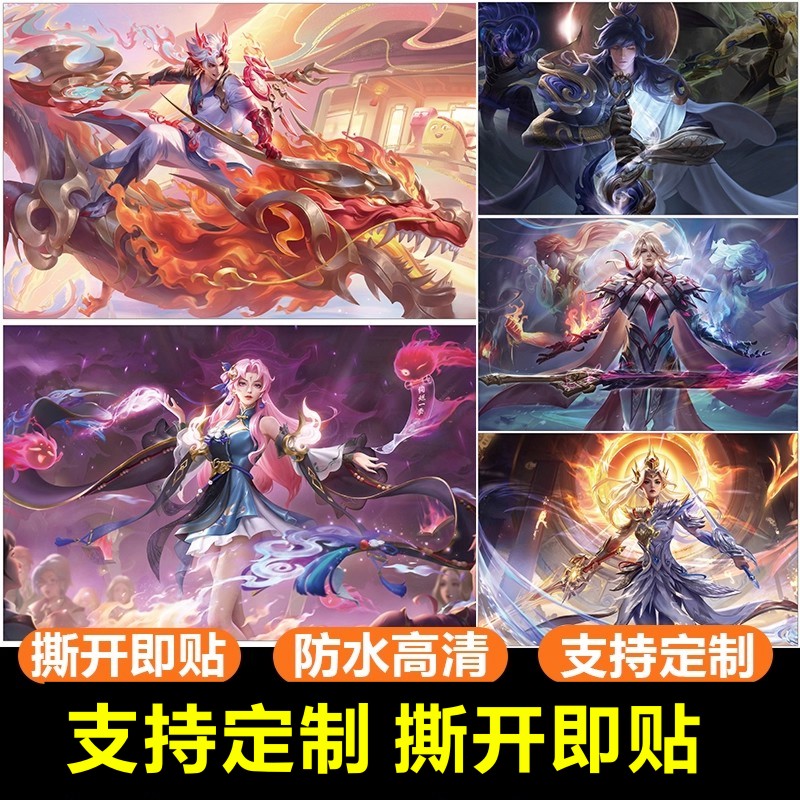 王者荣耀海报墙贴纸卧室寝室学生宿舍二次元装饰壁画自粘超大定制