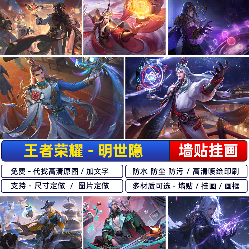 王者荣耀吟游魔法战令明世隐高清海报疑决卦宿舍客厅挂画贴纸自粘
