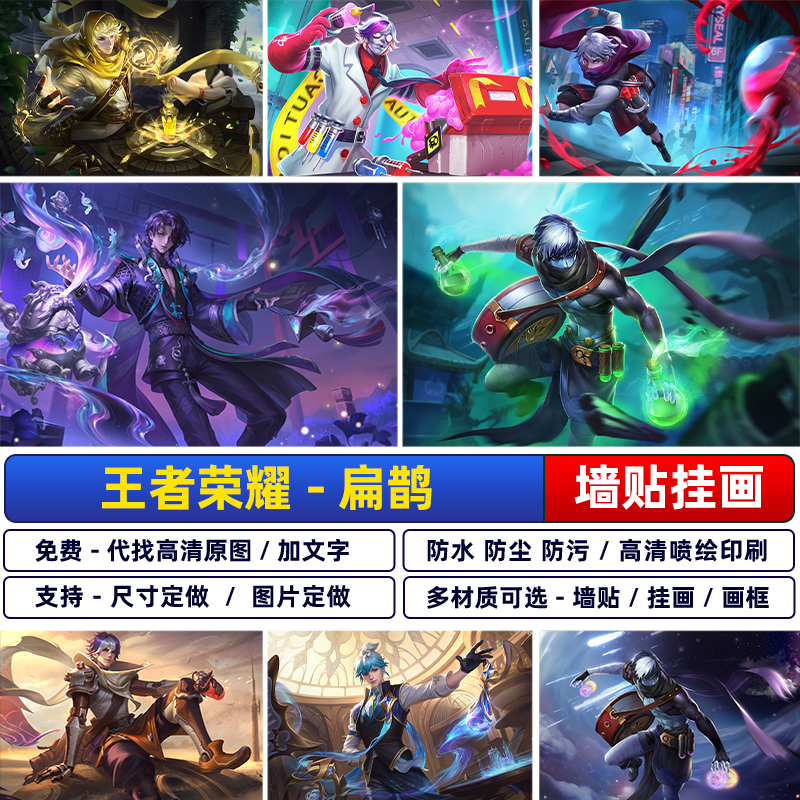 王者荣耀英雄扁鹊海报宿舍游戏装饰防水超大墙壁贴纸挂画自粘定制