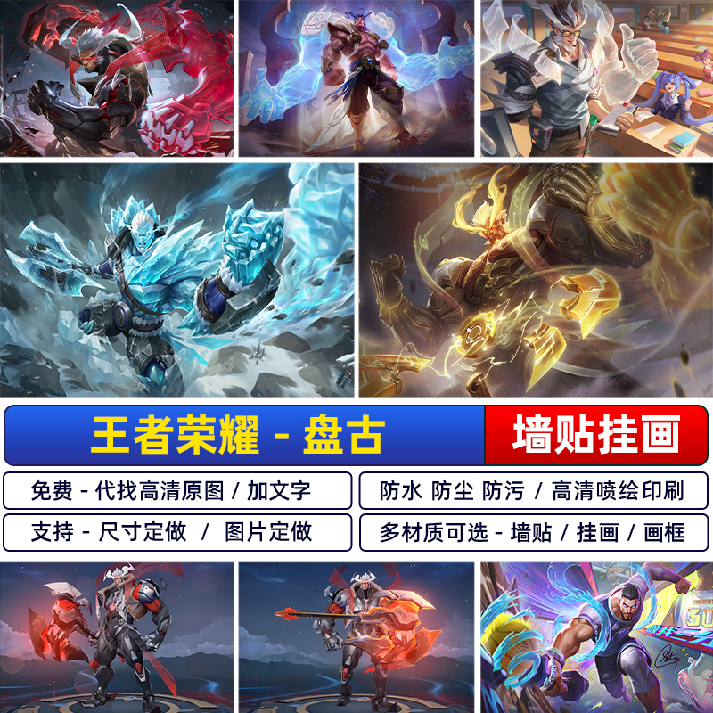 王者荣耀盘古冰霜神海报游戏宿舍卧室装饰墙贴壁纸挂画定制自粘画