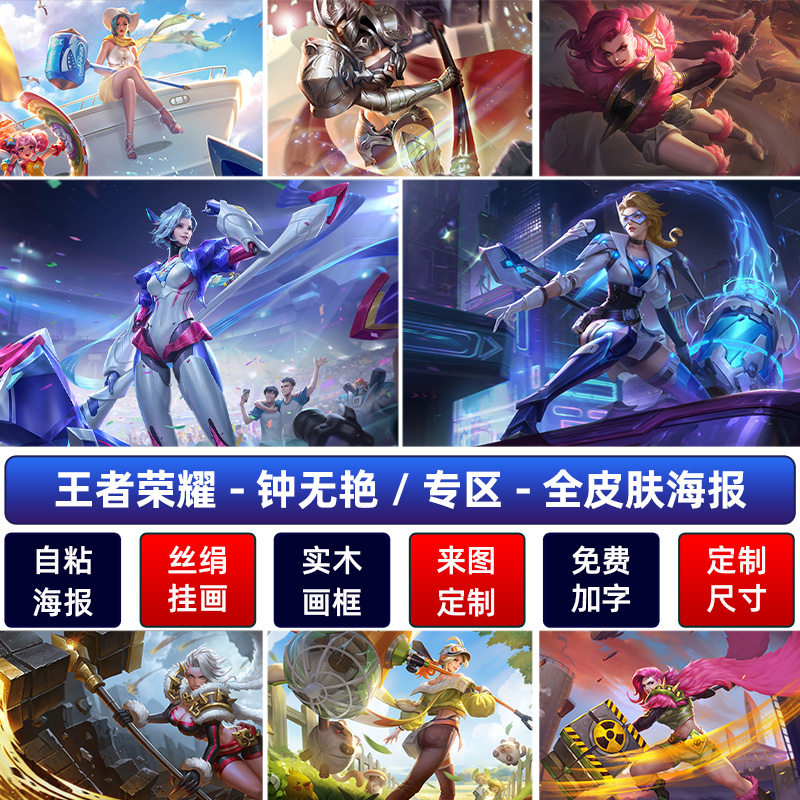 王者荣耀钟无艳超时空战士海报客厅宿舍挂画超大防水高清墙贴定做