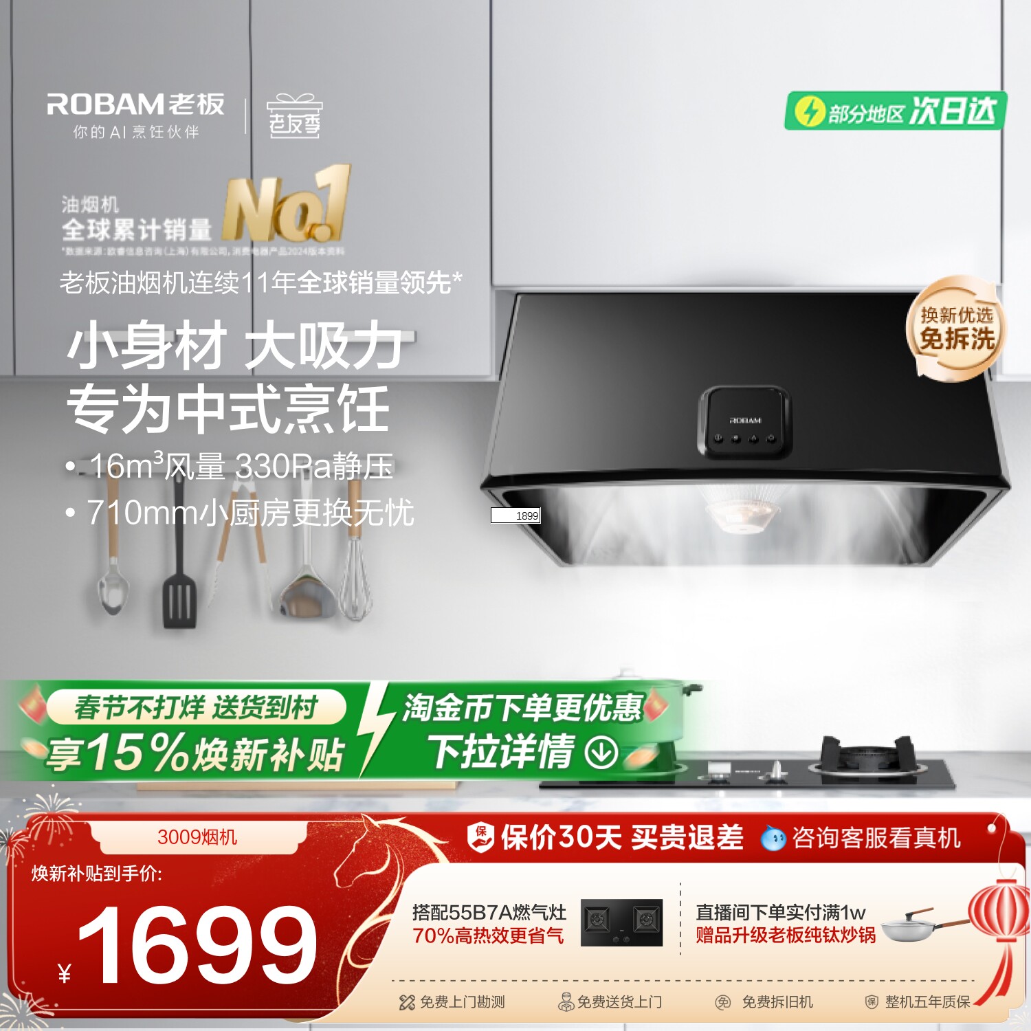 老板3009老式抽油烟机中式小型租房家用厨房大吸力脱排吸烟机官方
