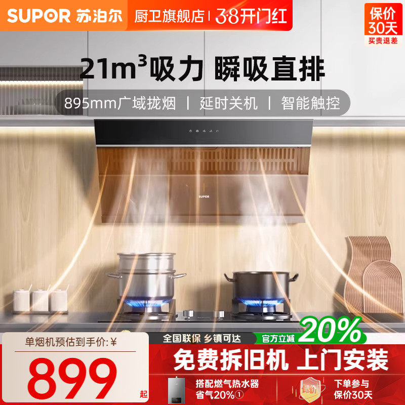 苏泊尔MJ12套装吸油烟机燃气灶侧吸烟机灶具煤气灶厨房抽烟机套餐