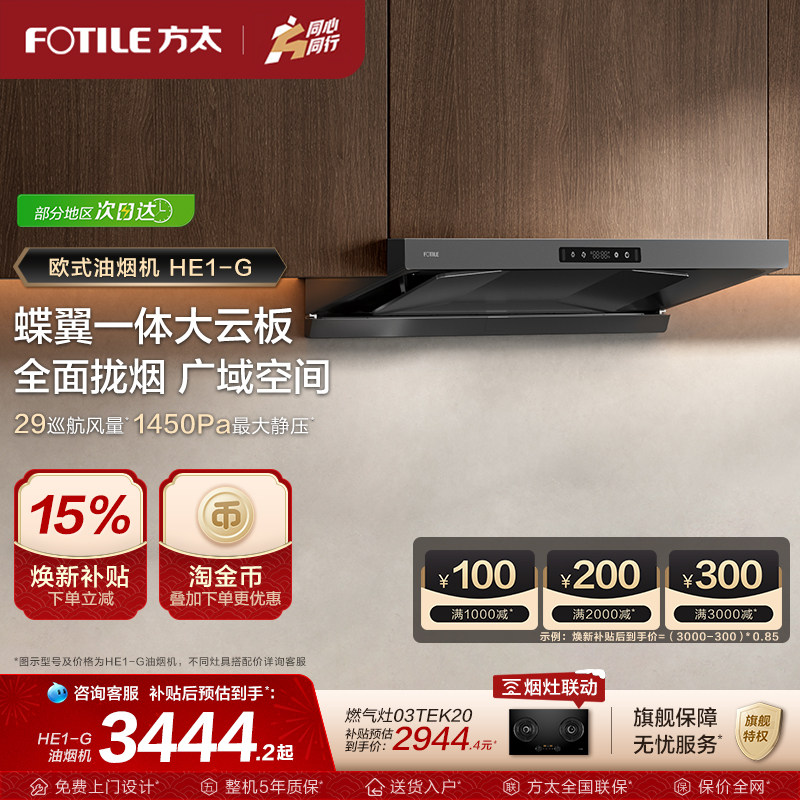方太变频油烟机抽烟机家用厨房顶吸烟机HE1-G排油机官方旗舰店