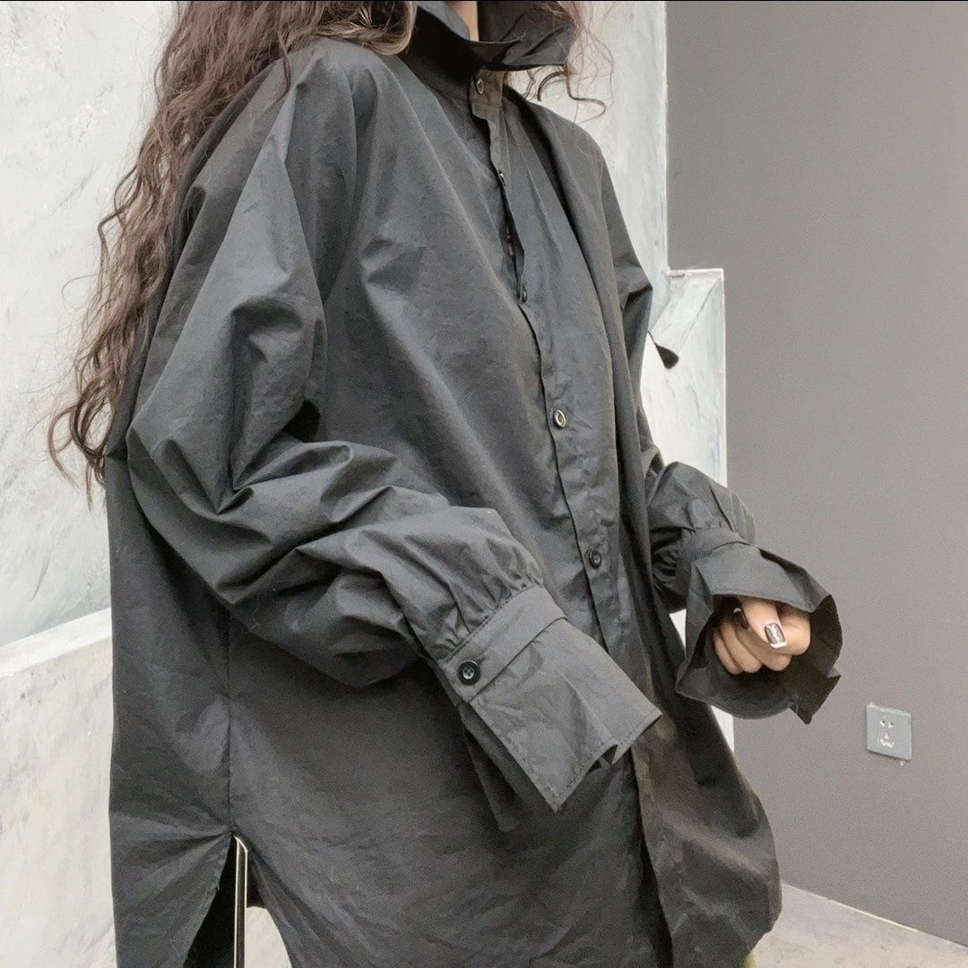 大码女装中长款加厚磨毛衬衫女秋冬季新款韩版宽松百搭设计感外套
