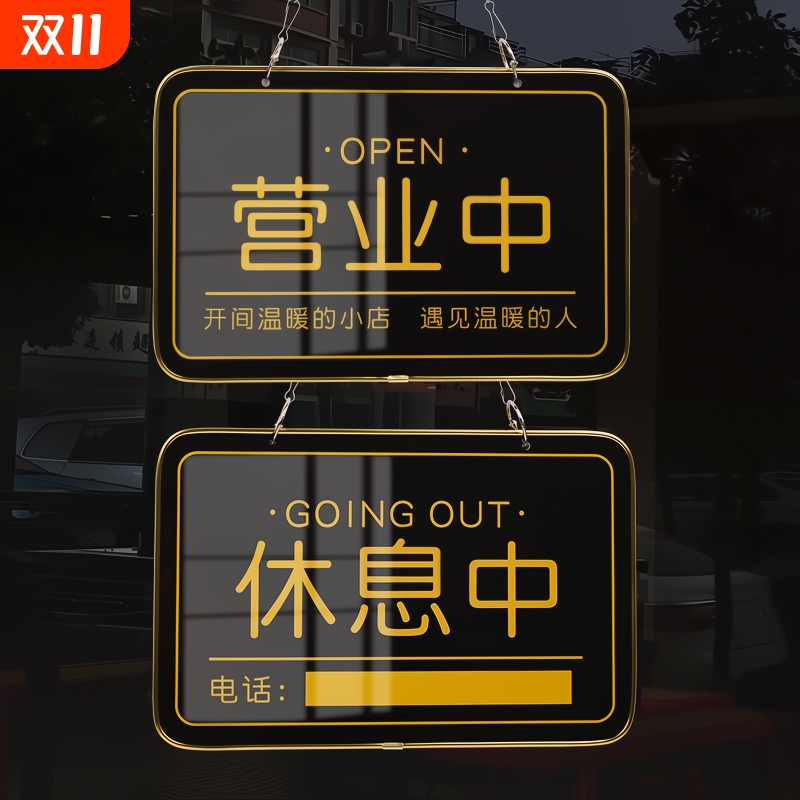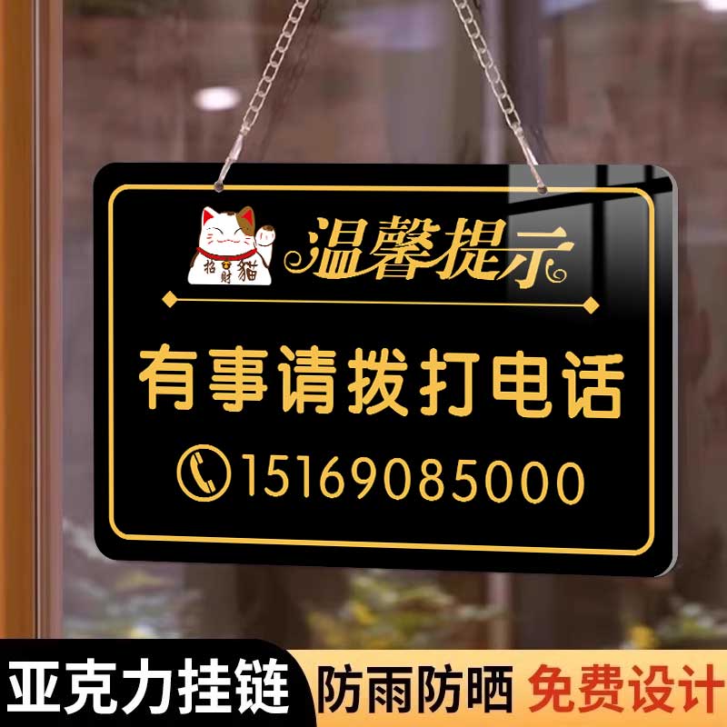 亚克力正在营业中挂牌订制创意双面店铺门牌挂牌休息中店主外出电话温馨提示玻璃门店铺提示牌定制网红风挂牌