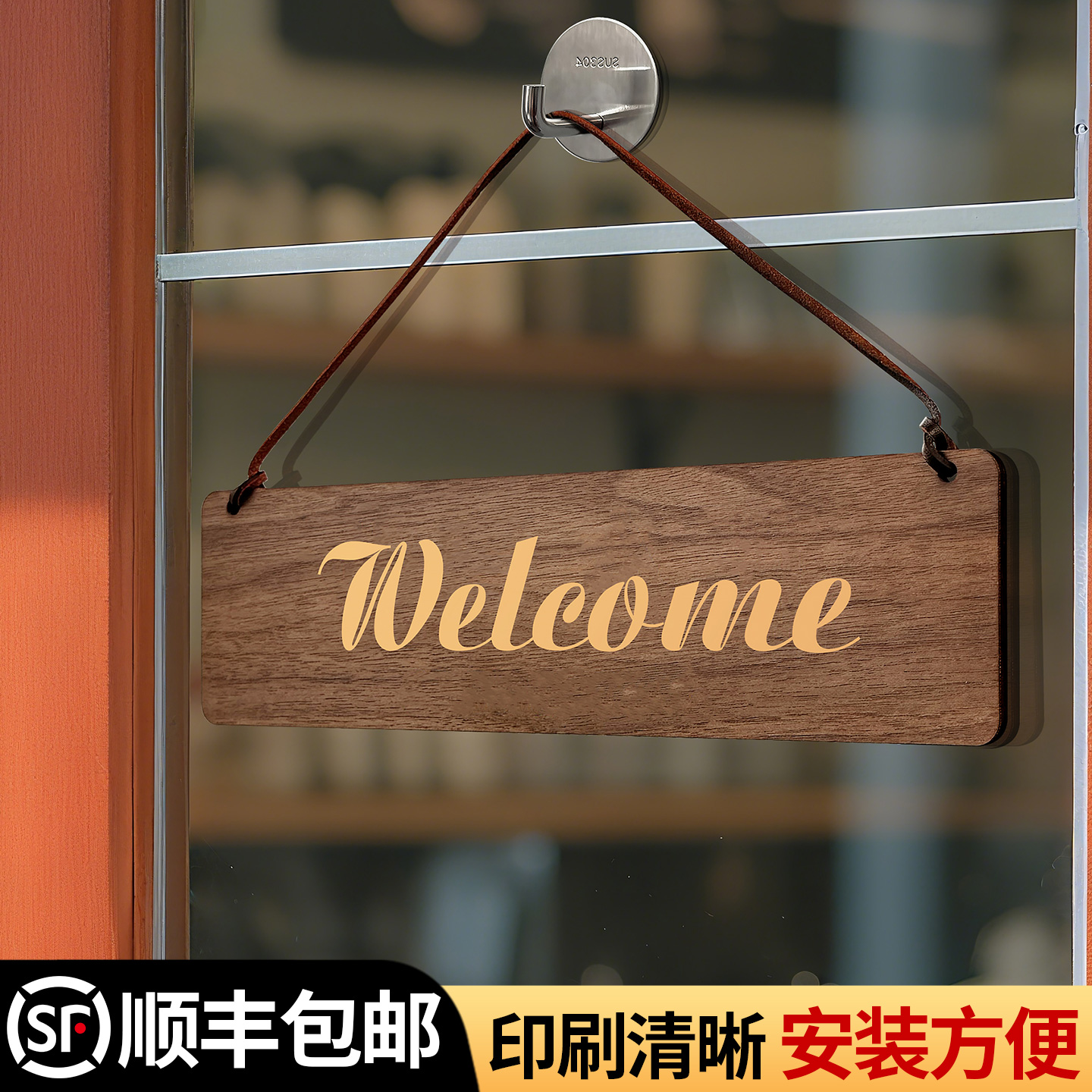 正在营业中挂牌双面欢迎光临空调开放休息中木质提示牌店主外出马上回来玻璃贴木牌高级店铺时间告示创意牌子