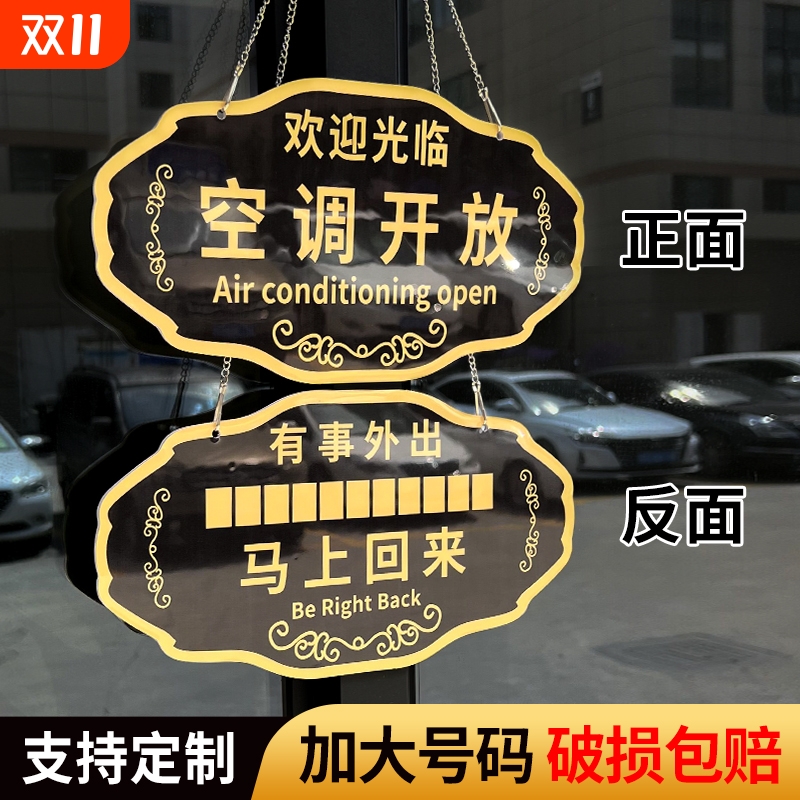 空调开放正在营业中挂牌店铺装饰欢迎光临有事外出号码定制提示牌