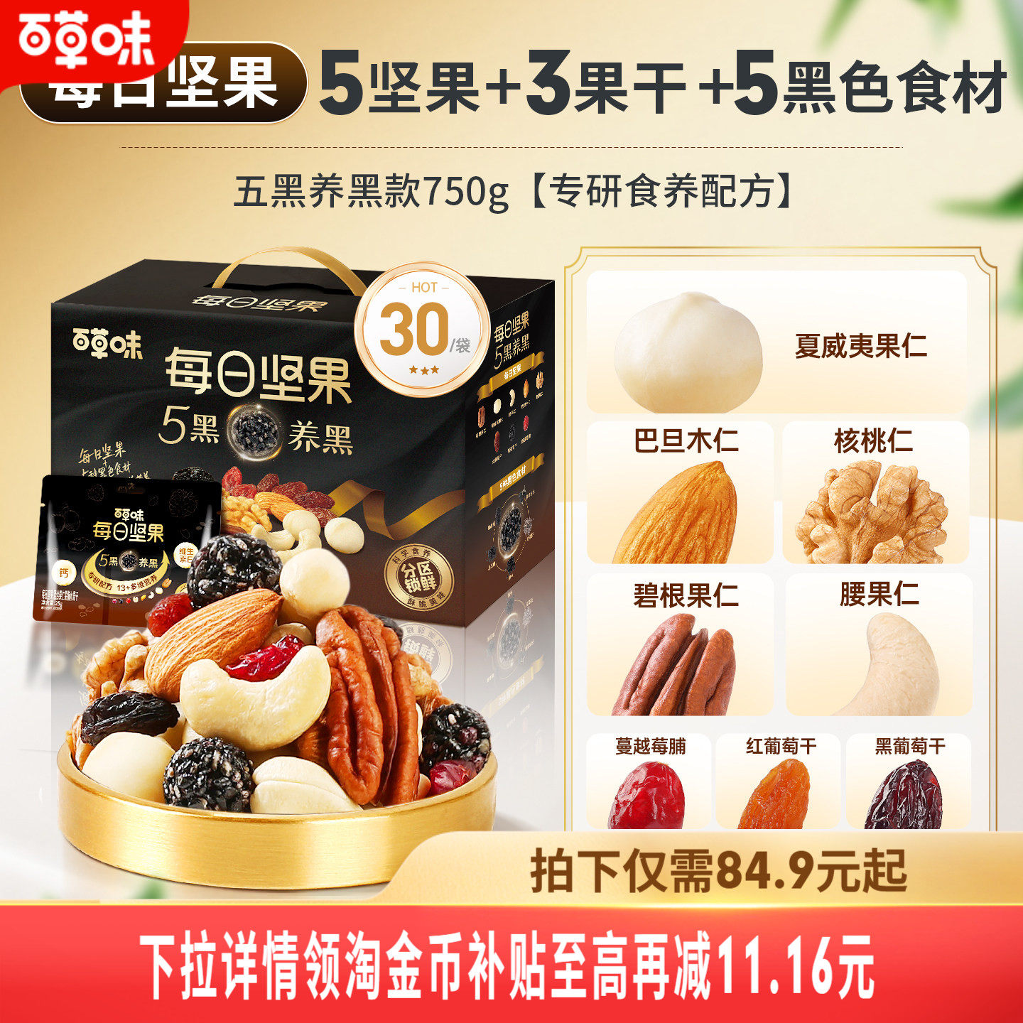 百草味五黑每日坚果混合坚果仁干果大礼包健康黑芝麻零食独小包装