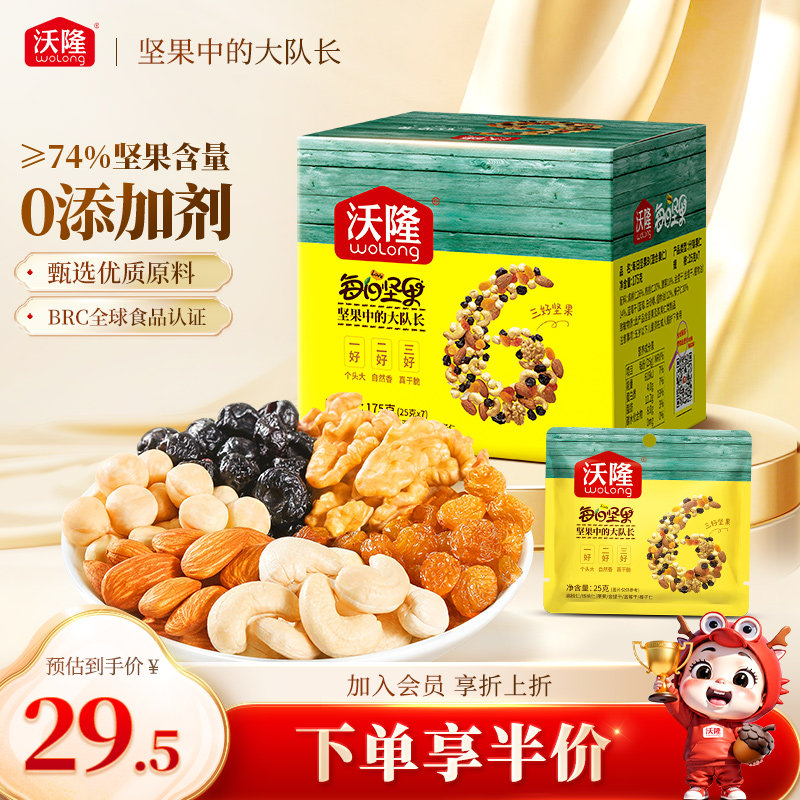 沃隆每日坚果儿童营养零食7袋混合坚果仁干果小吃小包装健康零食