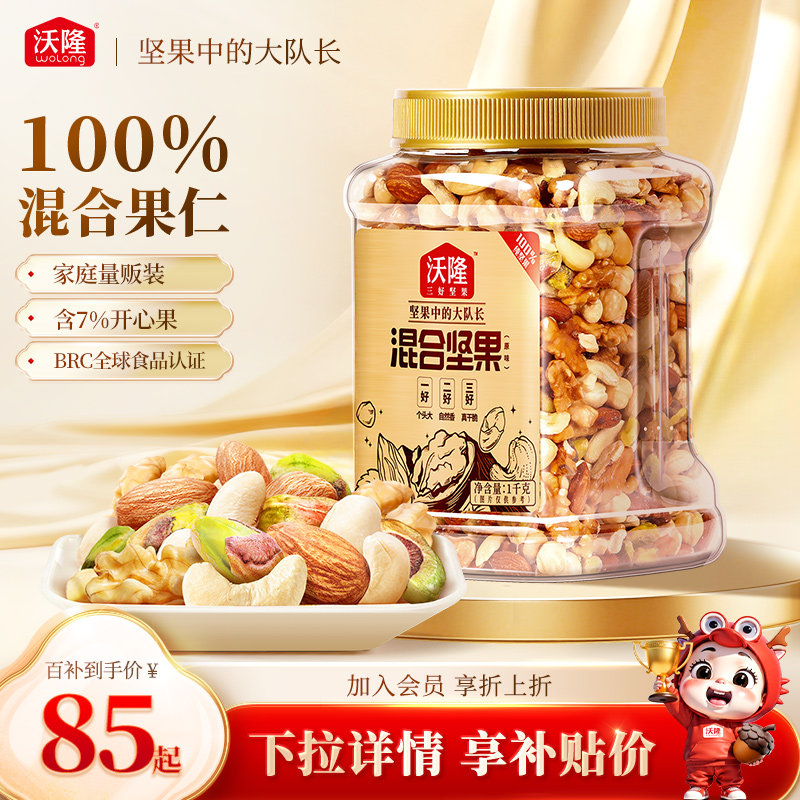 沃隆混合纯坚果2斤装孕妈大罐装休闲零食营养健康果仁年货节送礼