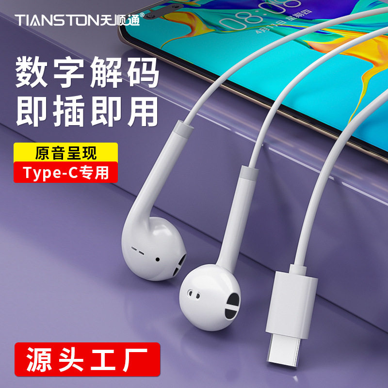 手机耳机有线听歌入耳式typec接口安卓高音质耳塞圆孔带麦通用