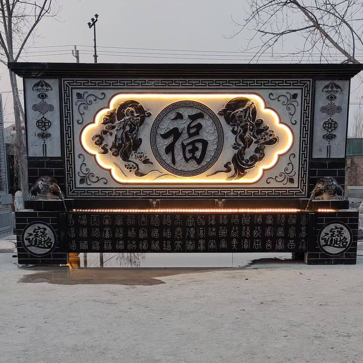 石雕鱼缸花盆花岗岩百福石头圆缸荷花家用水槽户外养鱼池庭院摆件