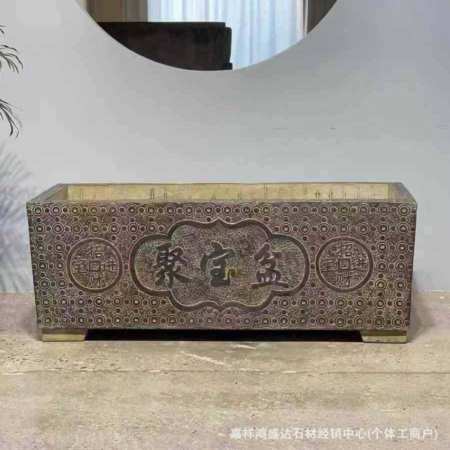 石雕鱼缸花盆仿古黄旧门海户外庭院石水槽水缸定做花岗岩招财摆件