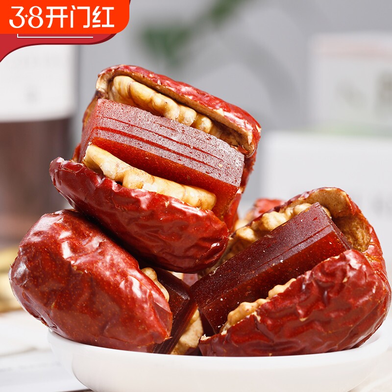 新疆三工四枣夹核桃500g包邮和田枣夹核桃灰枣枣夹核桃抱抱果零食