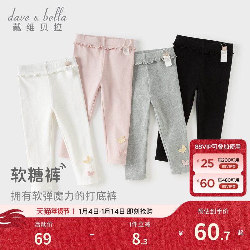 戴维贝拉儿童裤子2026春装新款女童宝宝打底裤休闲弹力针织紧身裤