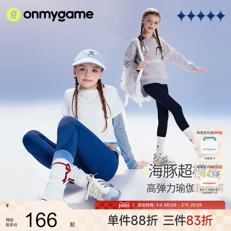 onmygame【海豚超模裤】女童春装打底裤2025新款高弹运动瑜伽裤子