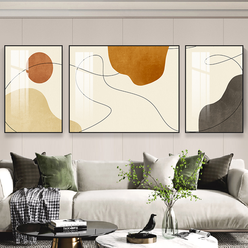 客厅沙发背景墙三联画简约轻奢抽象晶瓷挂画墙画壁画装饰画高级感