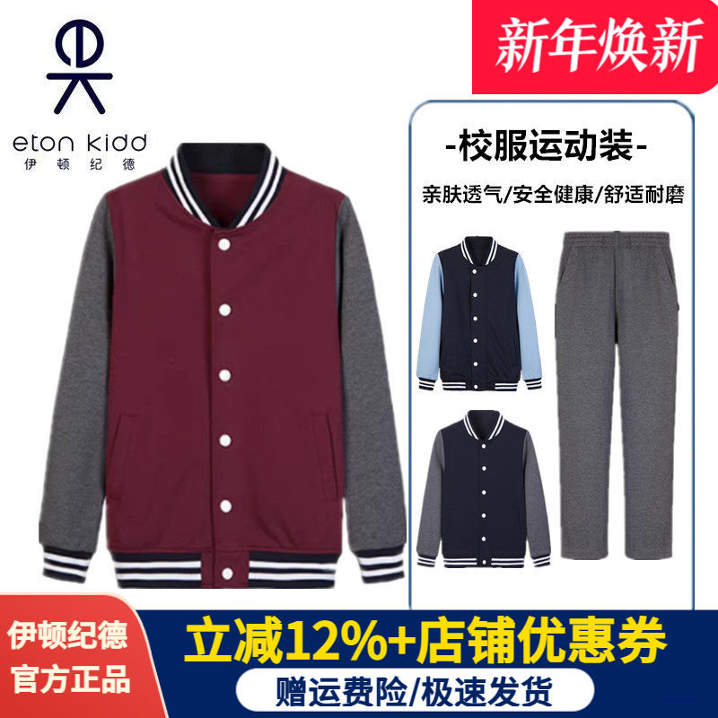 中小学生校服春秋装伊顿棒球服男女外套枣红纪德运动裤套装加绒厚