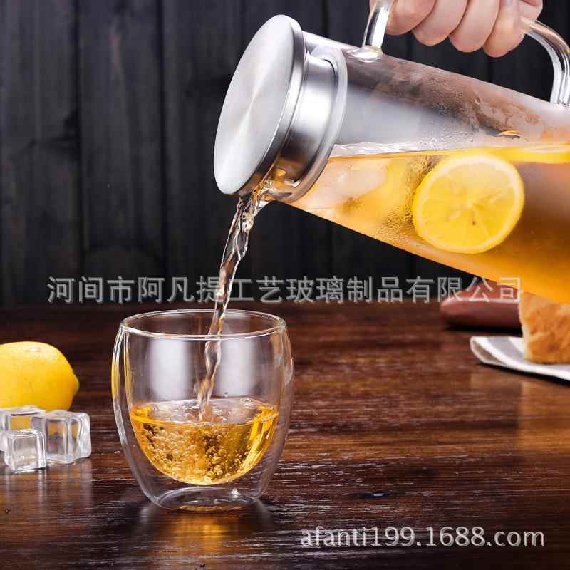 硅12加厚凉壶150毫升高硼耐热凉水水壶不锈钢带盖0过滤玻璃冷水壶