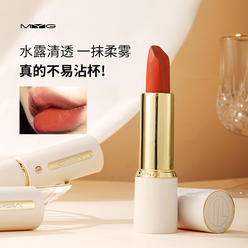 魅颜堂MYG不易沾杯不易口红持久保湿防水汗哑光显气色小白管唇膏