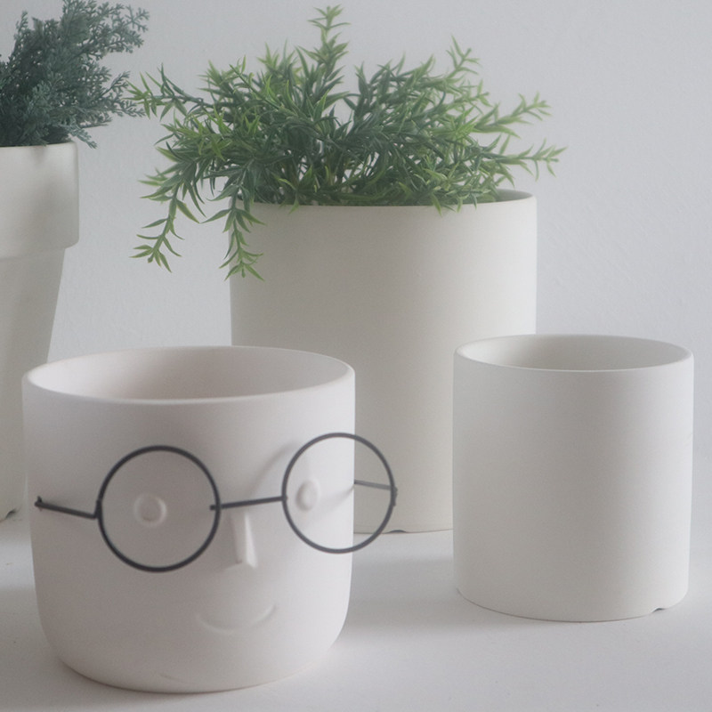 简约透气素烧胚白陶花盆可DIY画画极简北欧绿植多肉盆栽陶土瓷盆
