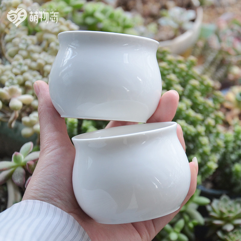 鹌鹑蛋形陶瓷盆 盆栽办公桌花盆创意迷你简约白色 白瓷盆 多肉盆