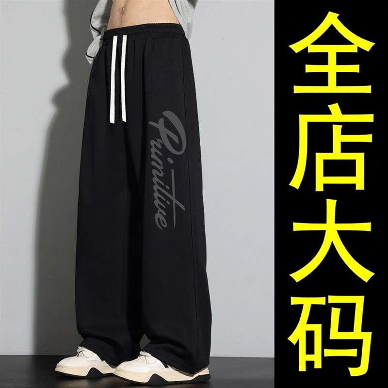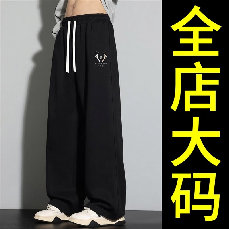 大码男士黑色垂感直筒裤春季宽松阔腿休闲长裤胖子加肥加大运动裤