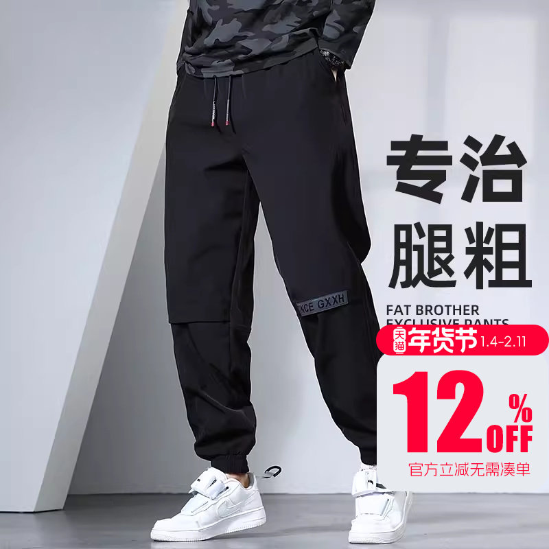450斤400肥佬特大码男裤子加肥加大运动裤束脚宽松休闲长裤夏天薄