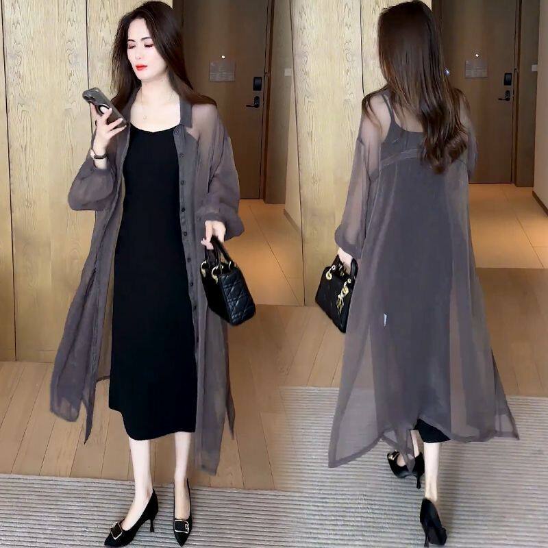 雪纺防晒衬衫女中长款时尚宽松遮屁股夏季薄款外搭空调衫外套上衣