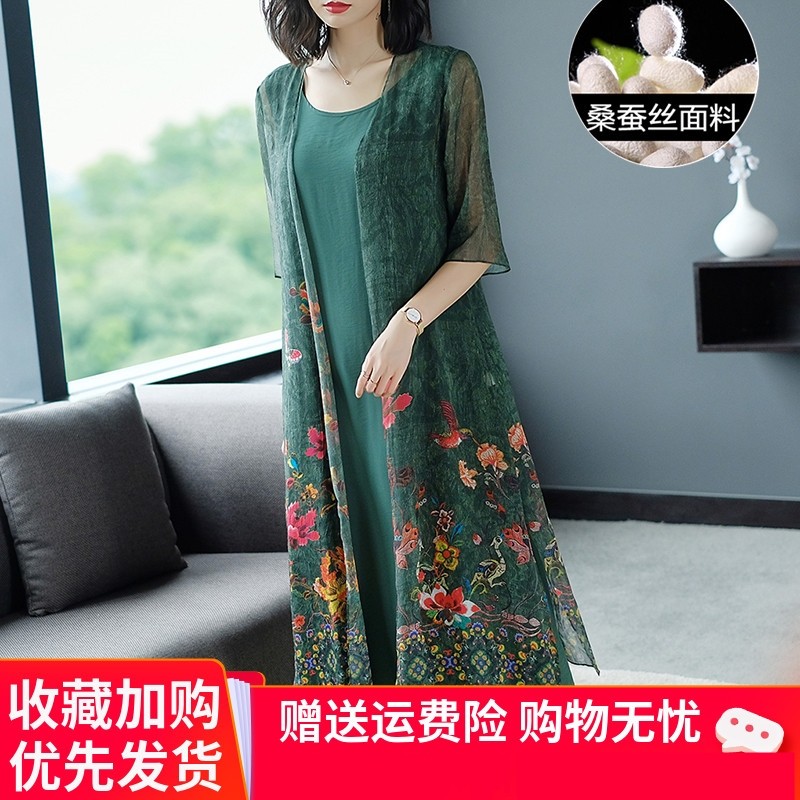 真丝防晒衣女配裙子中长款桑蚕丝印花开衫超仙女薄纱雪纺外搭披肩