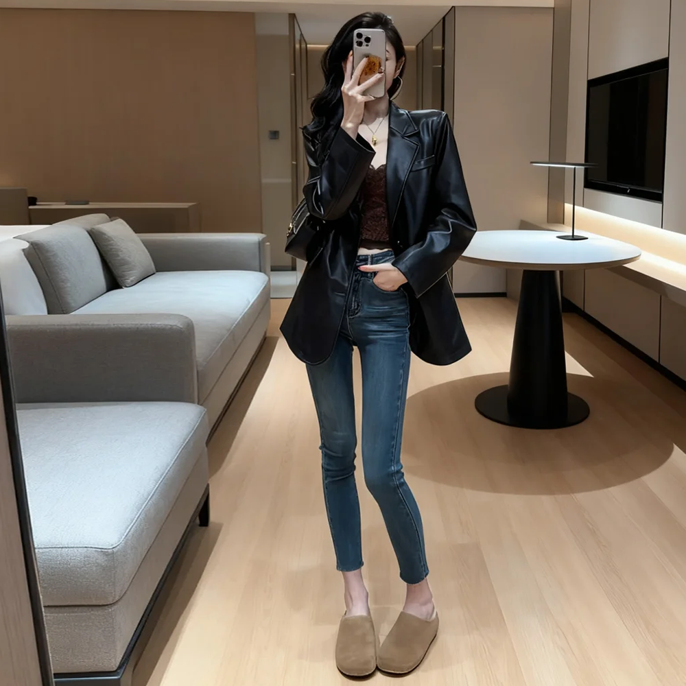 黑色牛仔裤女2025年春秋新款高腰大码胖mm修身显瘦紧身小脚铅笔裤