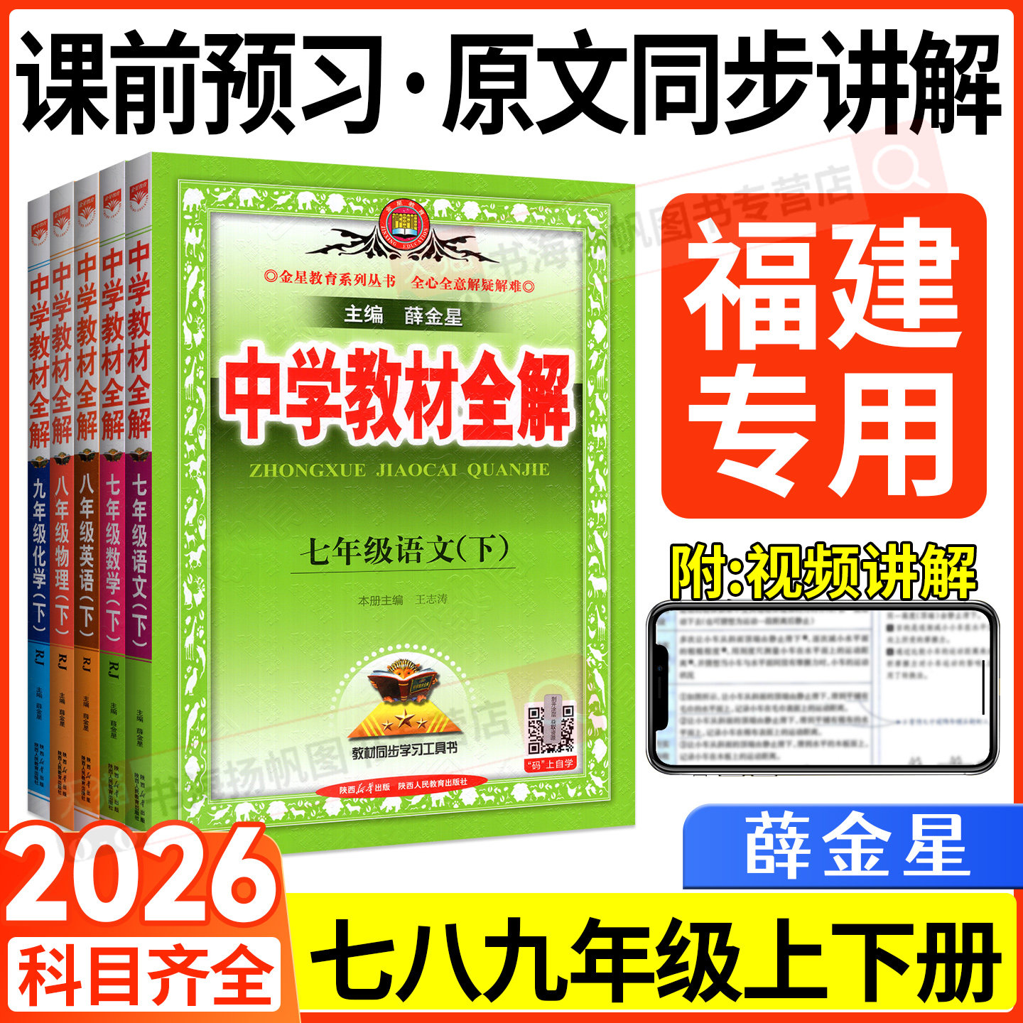 福建适用!2026中学教材全解七年级下册八九年级上语文数学英语物理化学历史人教版北师大初中薛金星初一下三二同步完全解读资料书