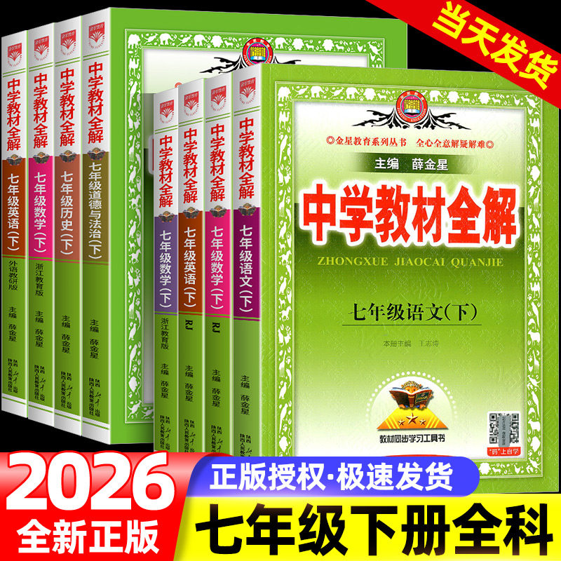 浙江专用2026新版中学教材全解七年级下册上册科学数学语文英语历史道德与法治人教外研浙教版初一必刷题全优方案教材解读薛金星