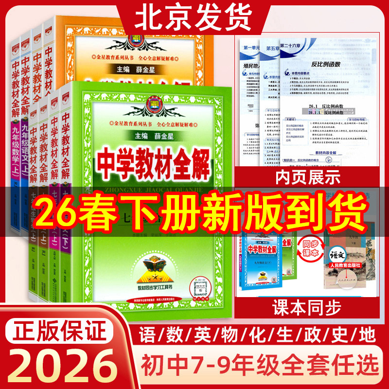 初中教材全解2026春上册下册25秋中学七八九年级语文数学英语历史地理生物学科学道德与法治课本同步北师苏冀外研人教辅书籍薛金星