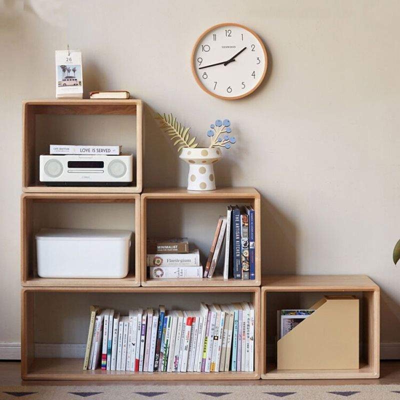 全松木实木自由组合书柜书架简约现代儿童单个格子柜收纳柜储物柜