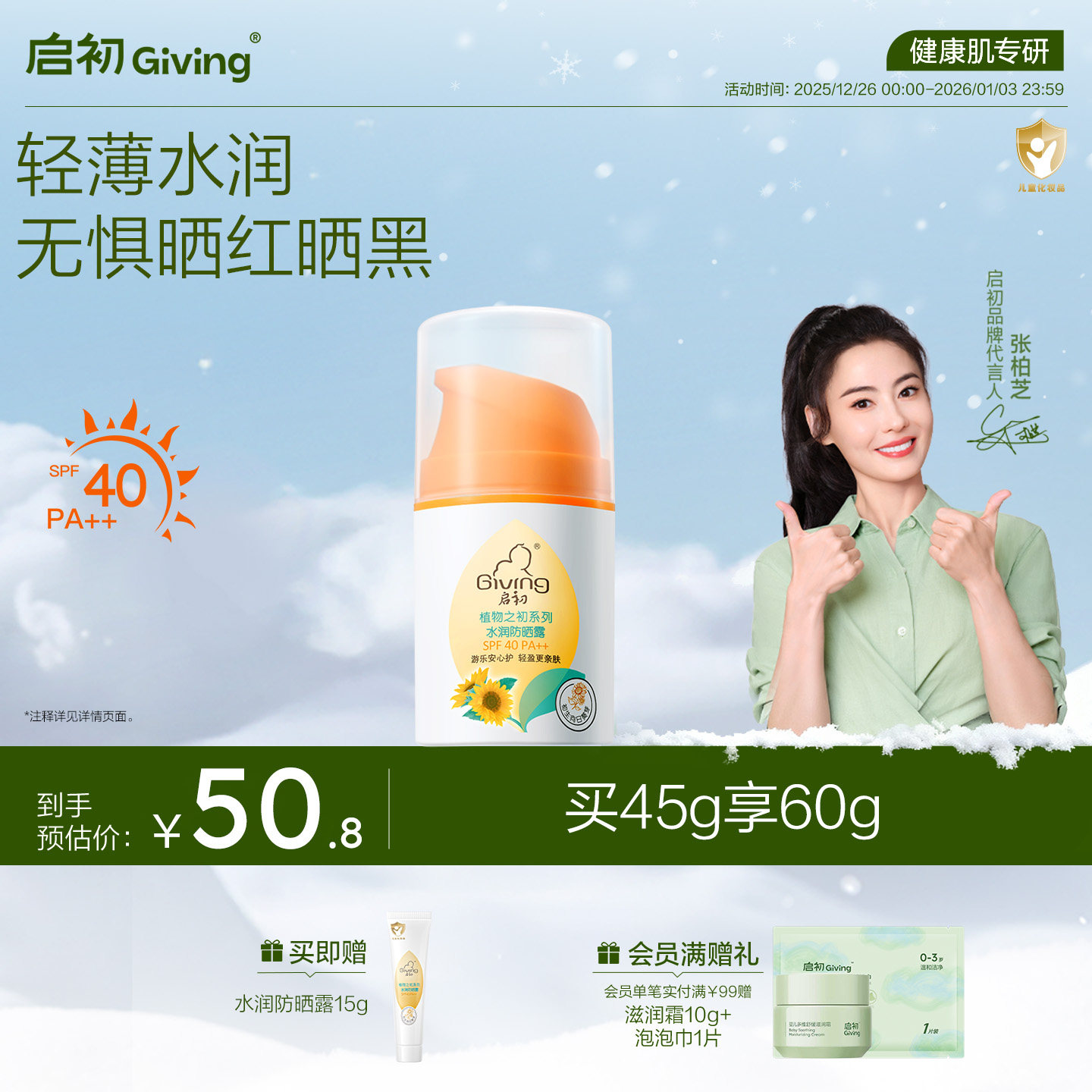 海龟爸爸儿童防晒霜小雪山防晒宝宝专用隔离紫外线婴儿物理防晒乳