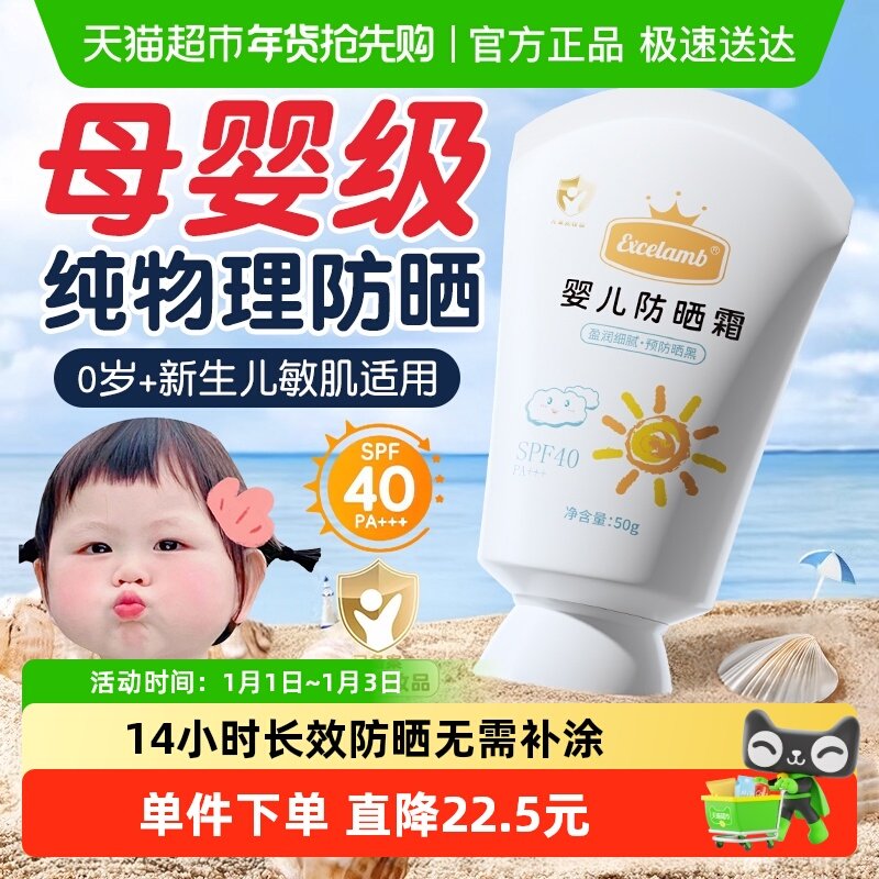 儿童防晒霜婴儿宝宝专用物理防晒乳小孩幼儿男女童正品官方旗舰店