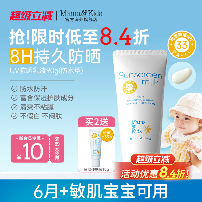 MamaKids儿童防晒霜婴儿宝宝SPF33防水防汗水润感物理防晒乳90g