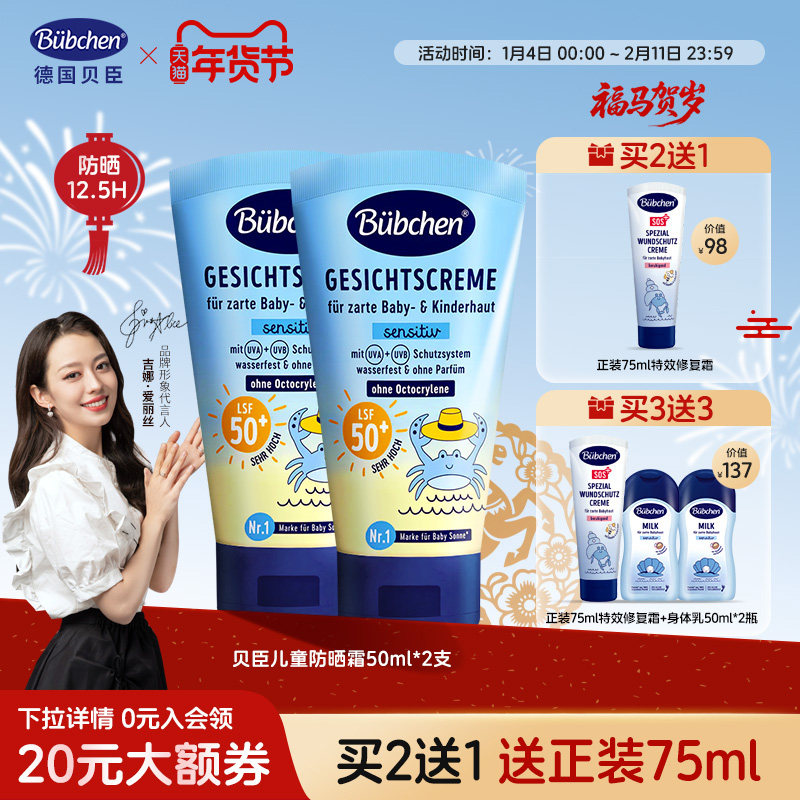 【户外出游】德国Bubchen贝臣儿童防晒霜海边隔离紫外线宝宝物理