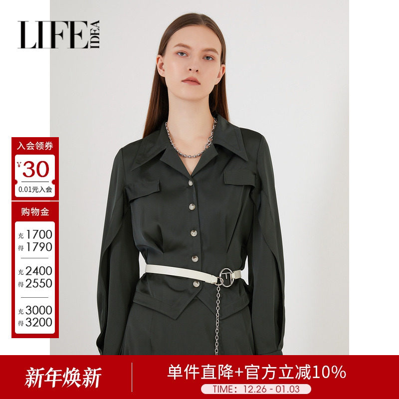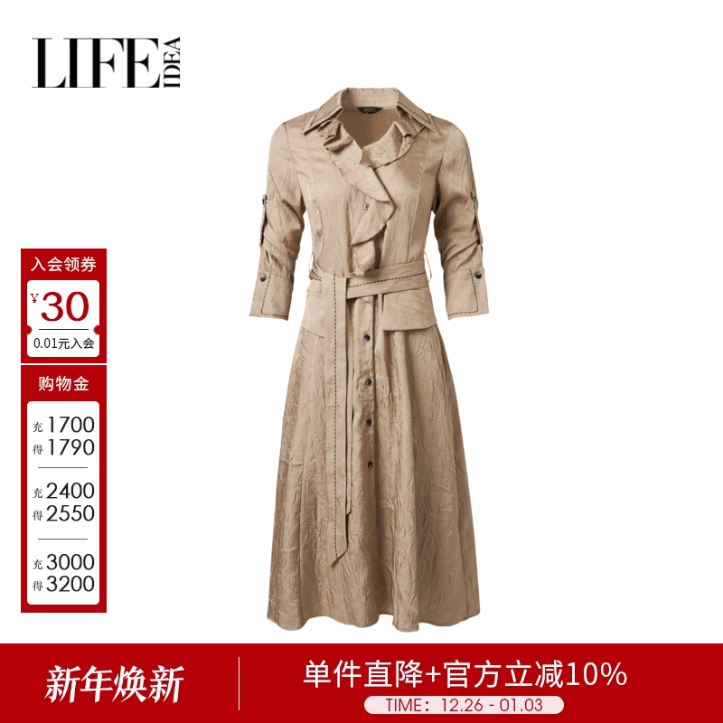 【品牌女装】莱芙艾迪儿荷叶边设计衬衫式连衣裙春秋新款职场通勤