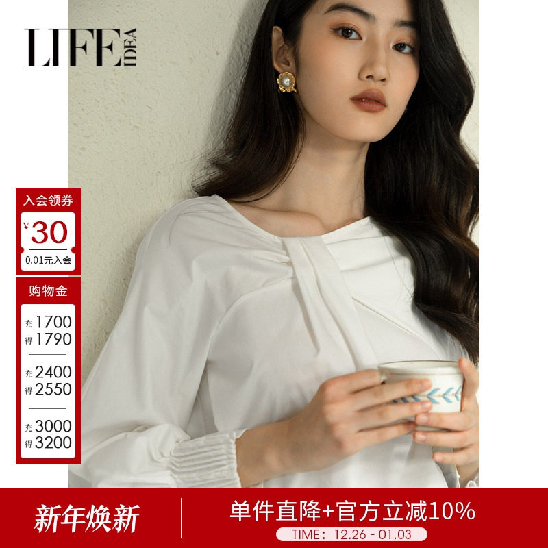 莱芙艾迪儿品牌女装春季新款白衬衫不规则设计长袖上衣1E1S25107