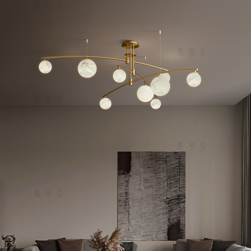 轻奢全铜客厅西班牙云石吊灯大气现代简约设计师别墅卧室餐厅灯具