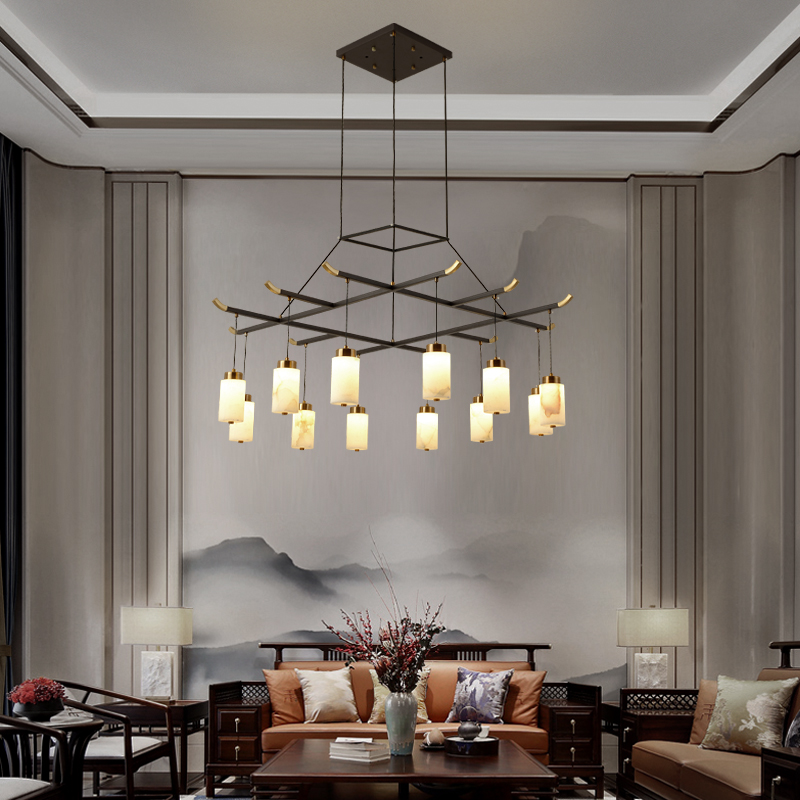 新中式客厅云石吊灯新款全铜轻奢简约别墅餐厅灯创意设计师卧室灯