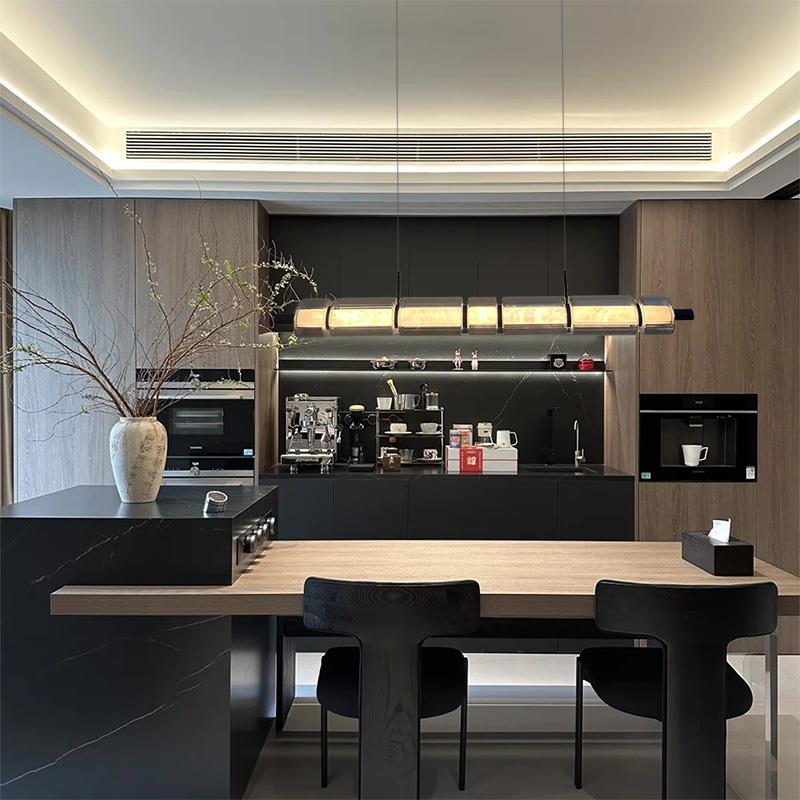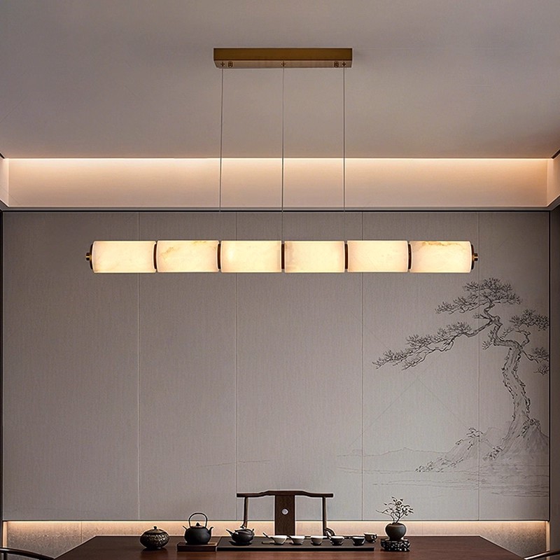 宋代美学新中式创意设计师茶室茶台餐厅书房岛台一字天然云石吊灯