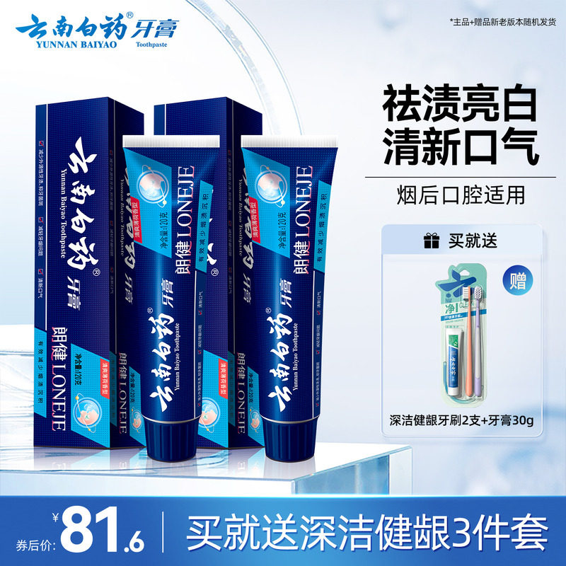 云南白药牙膏朗健牙膏男士清洁亮白祛除烟渍润口清新口气官方正品