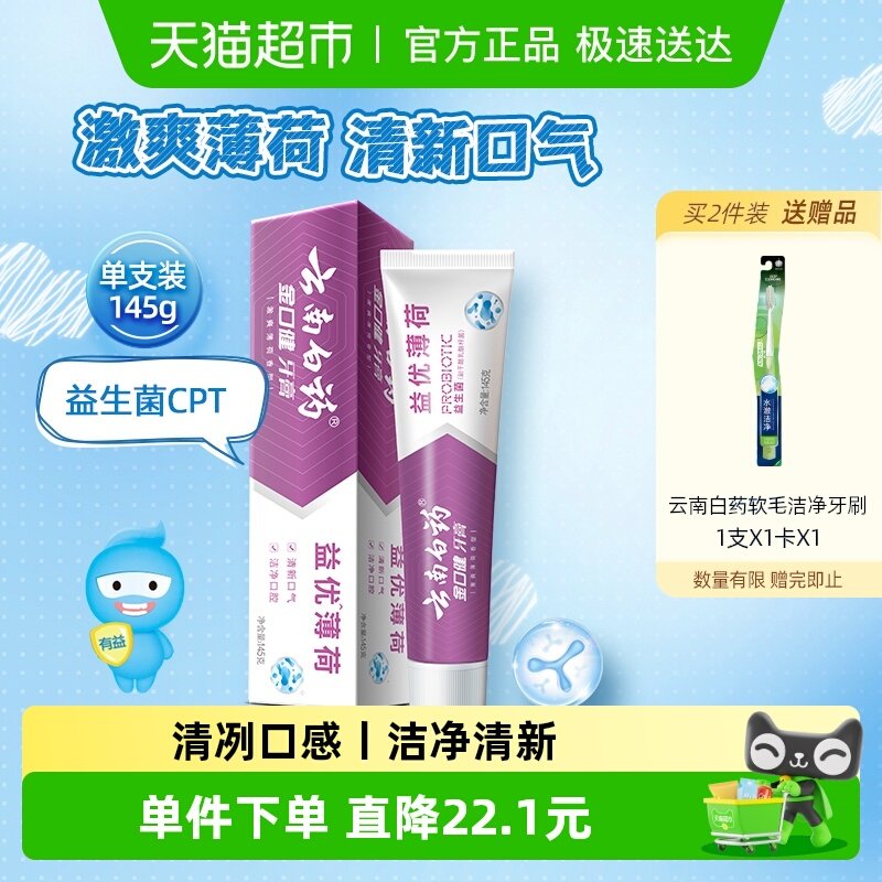 云南白药益生菌牙膏105g益优冰柠薄荷清新口气护龈145g正品家庭装