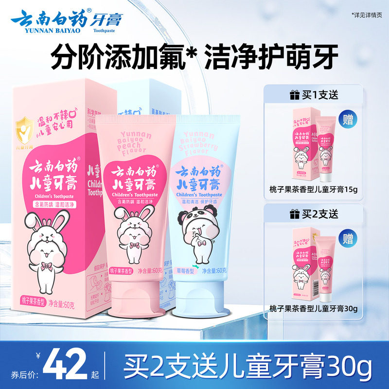 云南白药儿童牙膏3到6岁无氟6到12岁含氟换牙期防蛀固齿官方正品